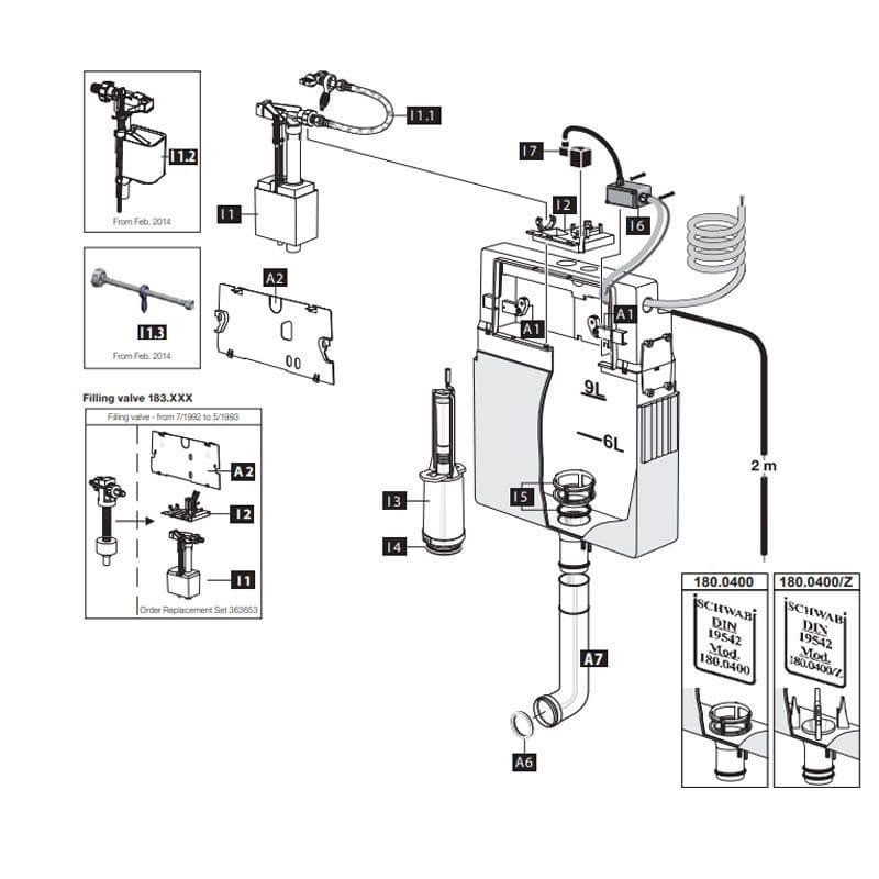Fluidmaster Schwab Concealed Cistern 184.XXX Spare Parts